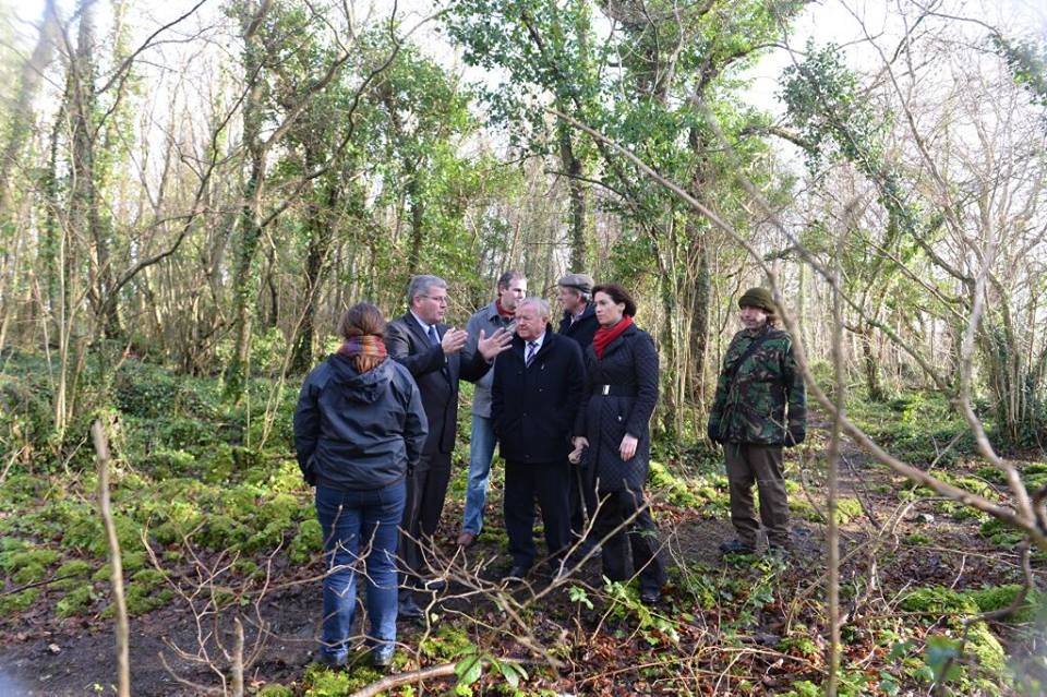 At Merlin Woods discussing the bus corridor were Fine Gael public representatives, Jim Higgins MEP, Cllr.Frank Fahy, Senator Hildegarde Naughton, Deputy Sean Kyne, and Friends of Merlin Woods Caroline and Colin Stanley.